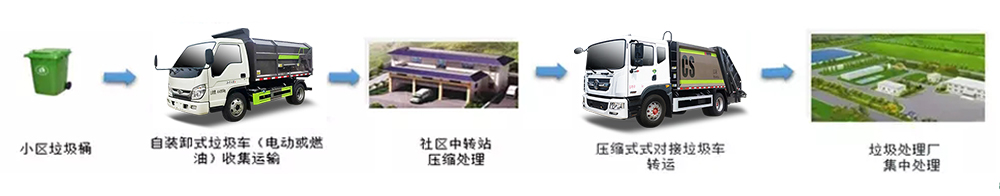 楚勝環衛針對農村環境治理開發了系列化產品:小型壓縮車、3噸側裝/后裝壓縮車、自裝卸垃圾車、移動壓縮中轉站、吸污吸糞車等。密閉、環保、高效的農村垃圾收集轉運體系,可依據人口分布、垃圾日產量及運輸距離等因素,因地制宜地提供不同收運方式。